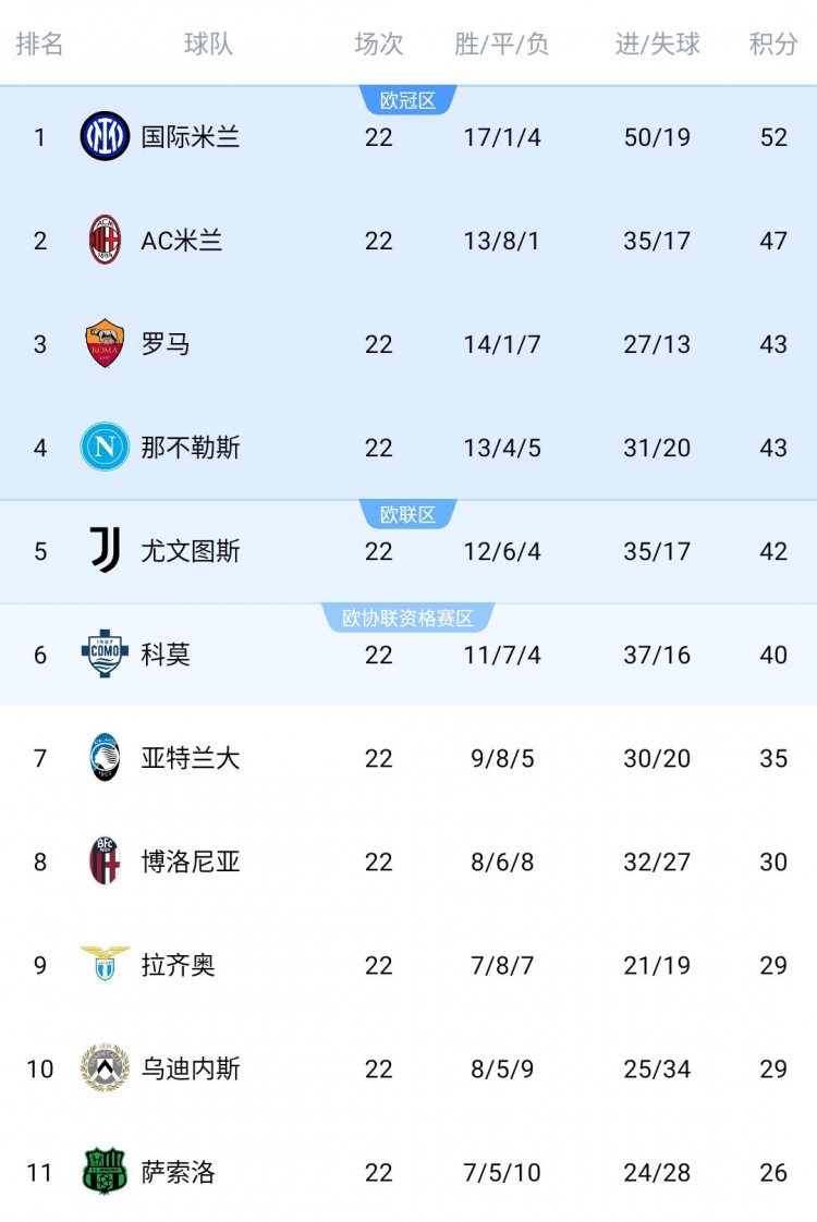 作为本赛季意甲的卫冕冠军,那不勒斯目前22轮过后拿到43分,距离榜首的国米已经落后9分,同时距离欧联区的尤文也只有1分。