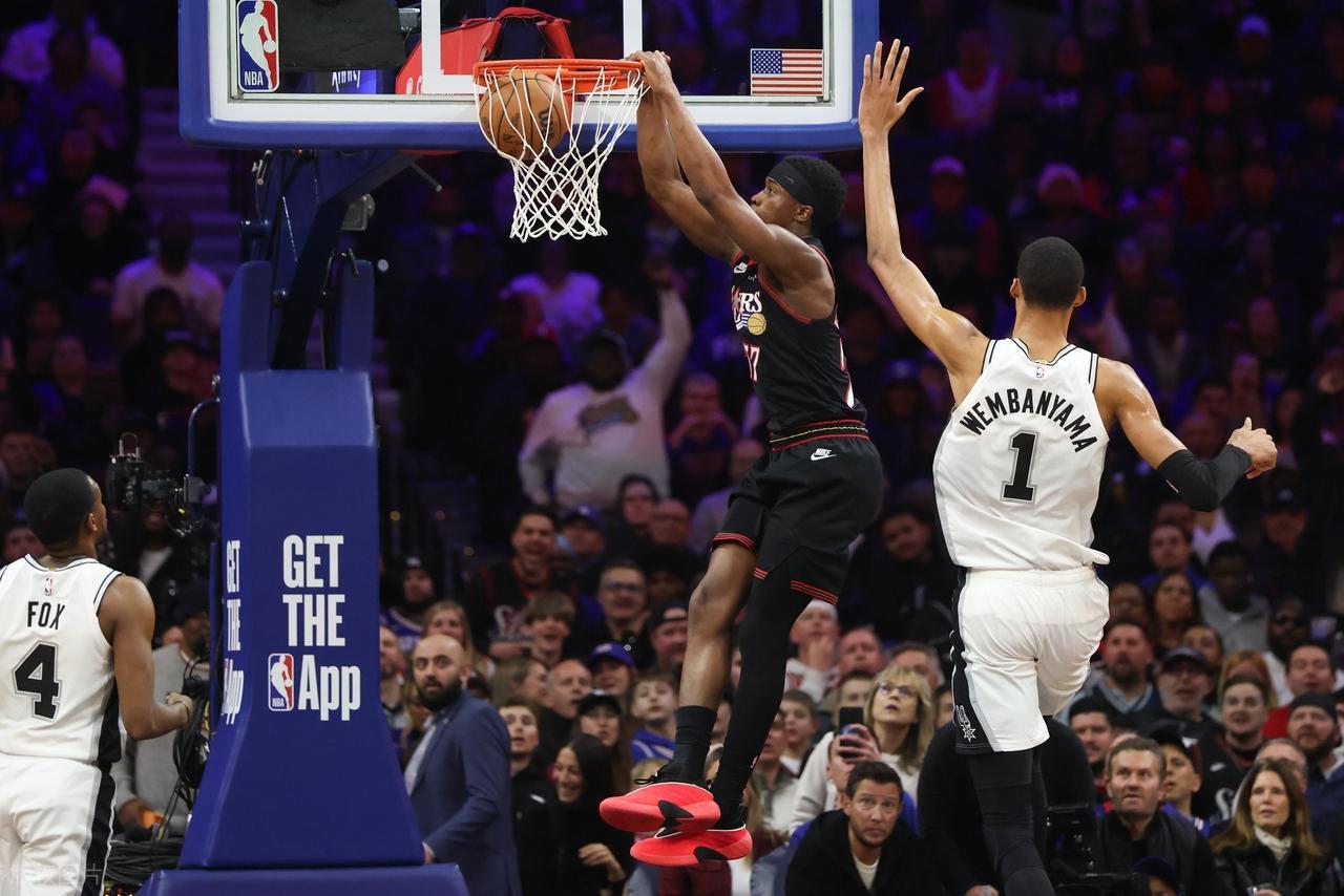 全场34次三分出手仅命中9球,除文班亚马外,仅有瓦塞尔和卡斯尔得分上双,球队整体表现难言理想。而76人上场比赛同样被凯尔特人终结连胜,33胜27负的战绩位列东部第六!恩比德上一场缺阵,马克西空砍33分6助攻,埃奇库姆拿到23分,其余球员表现平平。德拉蒙德中规中矩贡献10分12篮板,巴洛有14分8篮板入账,乌布雷10投仅2中,替补席四人合计仅得14分。目前 76 人阵容深度一般,乔治被禁赛,恩比德打打停停,确实伤害球队。此役,恩比德继续缺阵,赛前,美媒ESPN预测本场比赛,马刺胜率62.9%,76人胜率37.1%。首节比赛开打,首节马刺依靠团队进攻逐步压制残阵76人,马刺单节22投11中,命中率达到五成,三分11投3中。文班亚马虽无运动战出手,但依靠罚球2中2得到2分,另有3篮板1助攻4盖帽,防守端威慑明显;哈珀5投4中砍下11分,福克斯贡献5分5助攻。76人28投9中,三分11投5中,马克西7投2中得到8分5篮板2助攻,埃奇库姆6投1中仅得2分。首节战罢,马刺32-25领先76人。